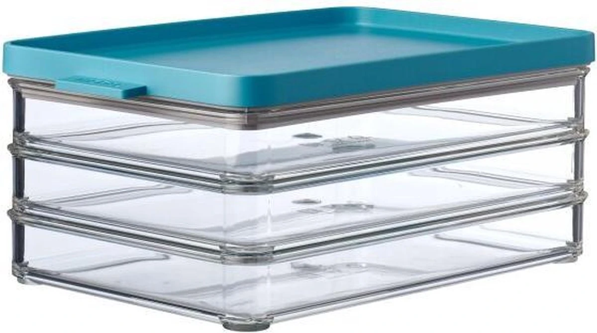 De Omnia koelkastdoos, 3-laags, voor vleeswaren helpt je graag met het bewaren en vershouden van jouw favoriete vleeswaren. Of je nu gek bent op leverworst, liever voor ontbijtspek kiest of helemaal blij wordt van een plakje boterhamworst; met deze vleeswarendoos voor de koelkast houd je alles lekker lang vers! De bovenste laag is bovendien voorzien van een deksel, waardoor deze volledig lucht- en aromadicht afgesloten wordt. Ook is de deksel zo vormgegeven, dat er gemakkelijk meerdere Omnia koelkastdozen op elkaar gestapeld kunnen worden. Hoeveel verschillende soorten beleg je ook wilt bewaren, met deze vleeswaren bewaardoos houd je alles netjes bij elkaar. De vleeswaren vershouddoos is uitgevoerd in de kleur Nordic green, wat hem ook nog eens een mooie verschijning maakt!mooie verschijning is.