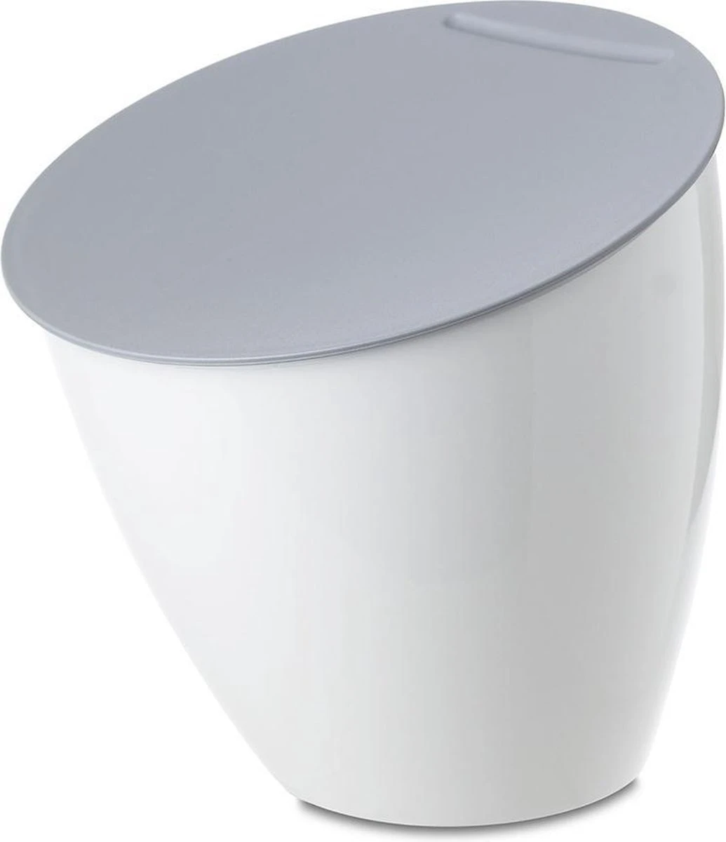 Afvalbakje Calypso in de kleur Wit. Geen handiger afvalbakje voor op het aanrecht dan de Calypso van Mepal. Deze afvalcontainer neemt weinig ruimte in, heeft een grote vulopening, werkt zonder zakjes, is draagbaar en gemakkelijk te reinigen. Voor koffiepads en al uw kleine keukenafval! Het afvalbakje is te gebruiken in de keuken en badkamer.